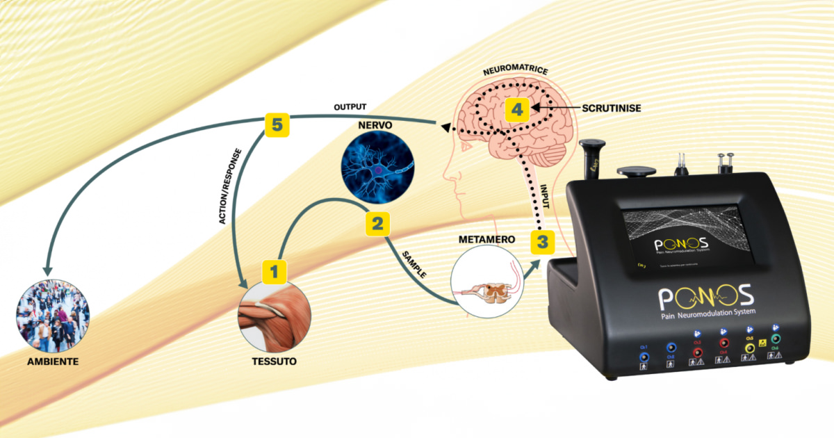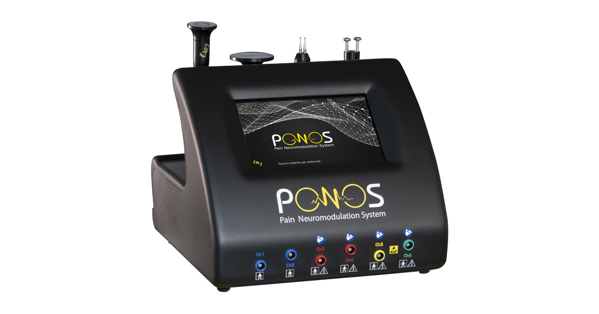 - Ponos consente un’attività mirata al sistema nervoso periferico con la neuromodulazionhe o al tessuto infiammato con la radiofrequenza e contemporaneamente un approccio sistemico o nocicettivo con correnti specifiche.